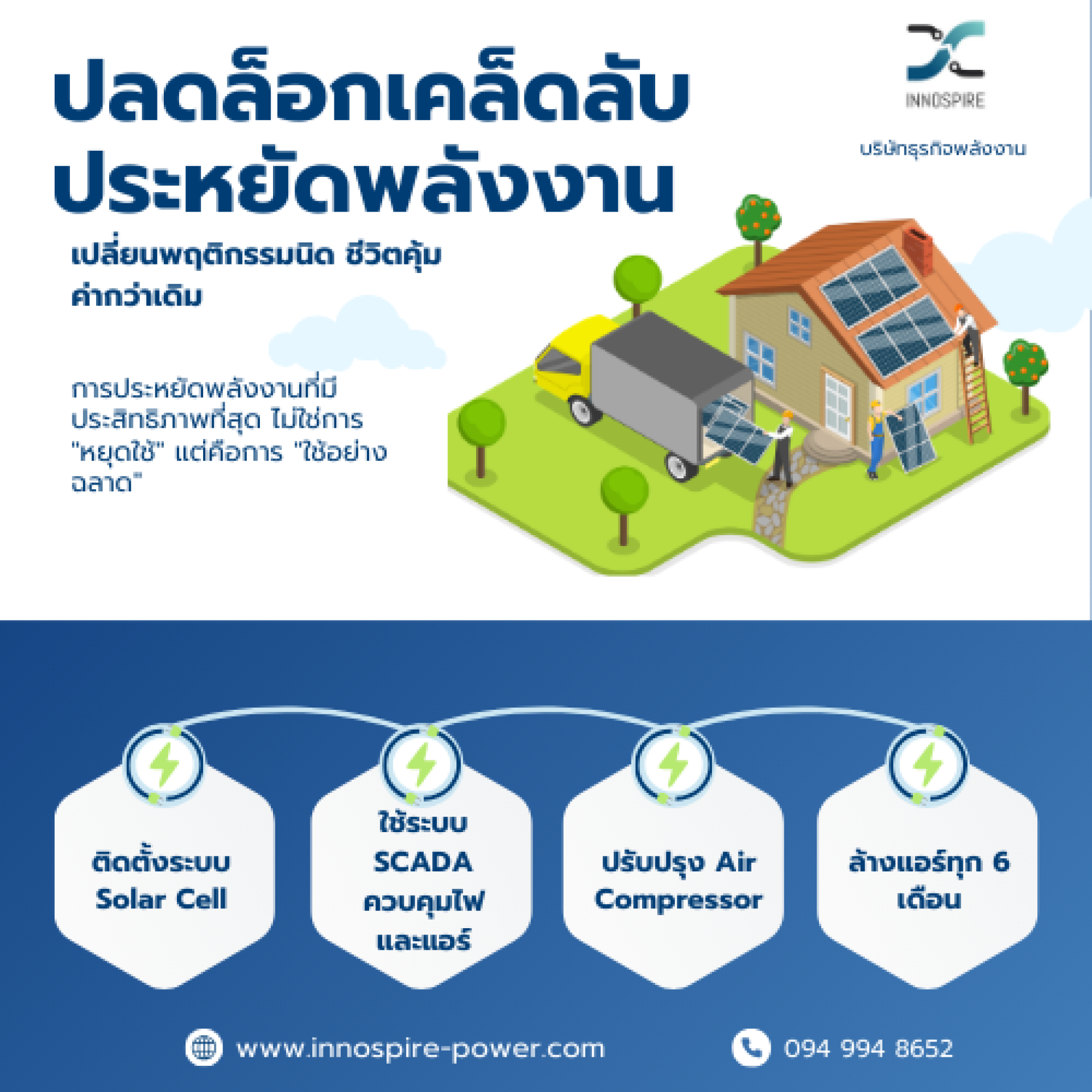 สนใจประหยัดพลังงานแบบยั่งยืน ทั้งข้อมูลการติดตั้ง Solar Rooftop และระบบบริหารจัดการพลังงานด้วยระบบ SCADA ติดต่อ 094 9948652, 081 6212725 หรือ กด Contact ใน website ได้เลยค่ะ